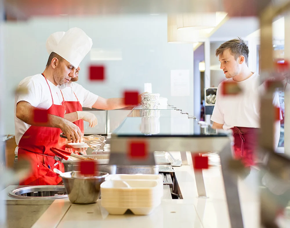 - Kostenfreies Frühstück während der Arbeitszeit und ein gefördertes 3-Gang-Mittagessen.